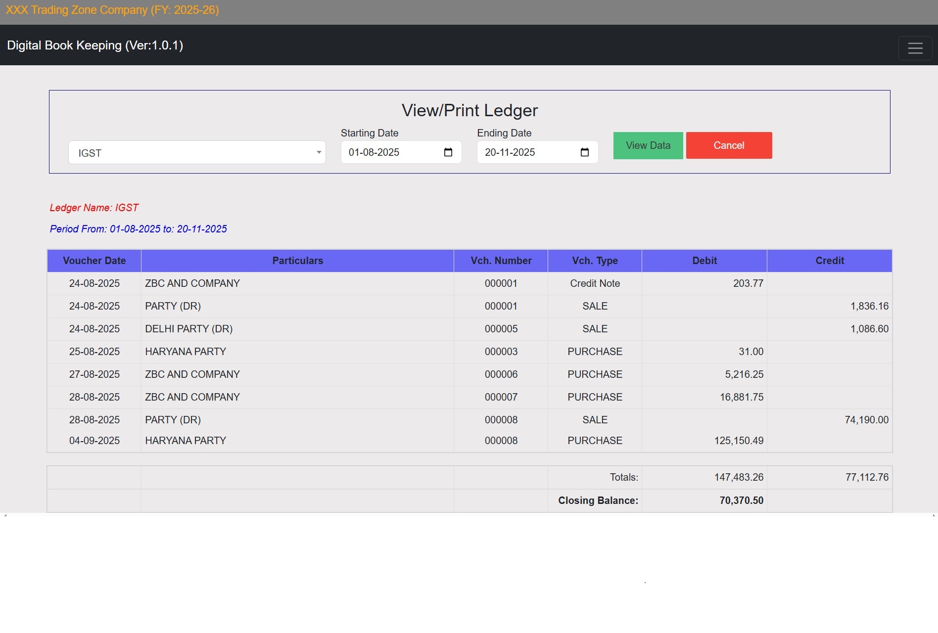 Account Ledger Report