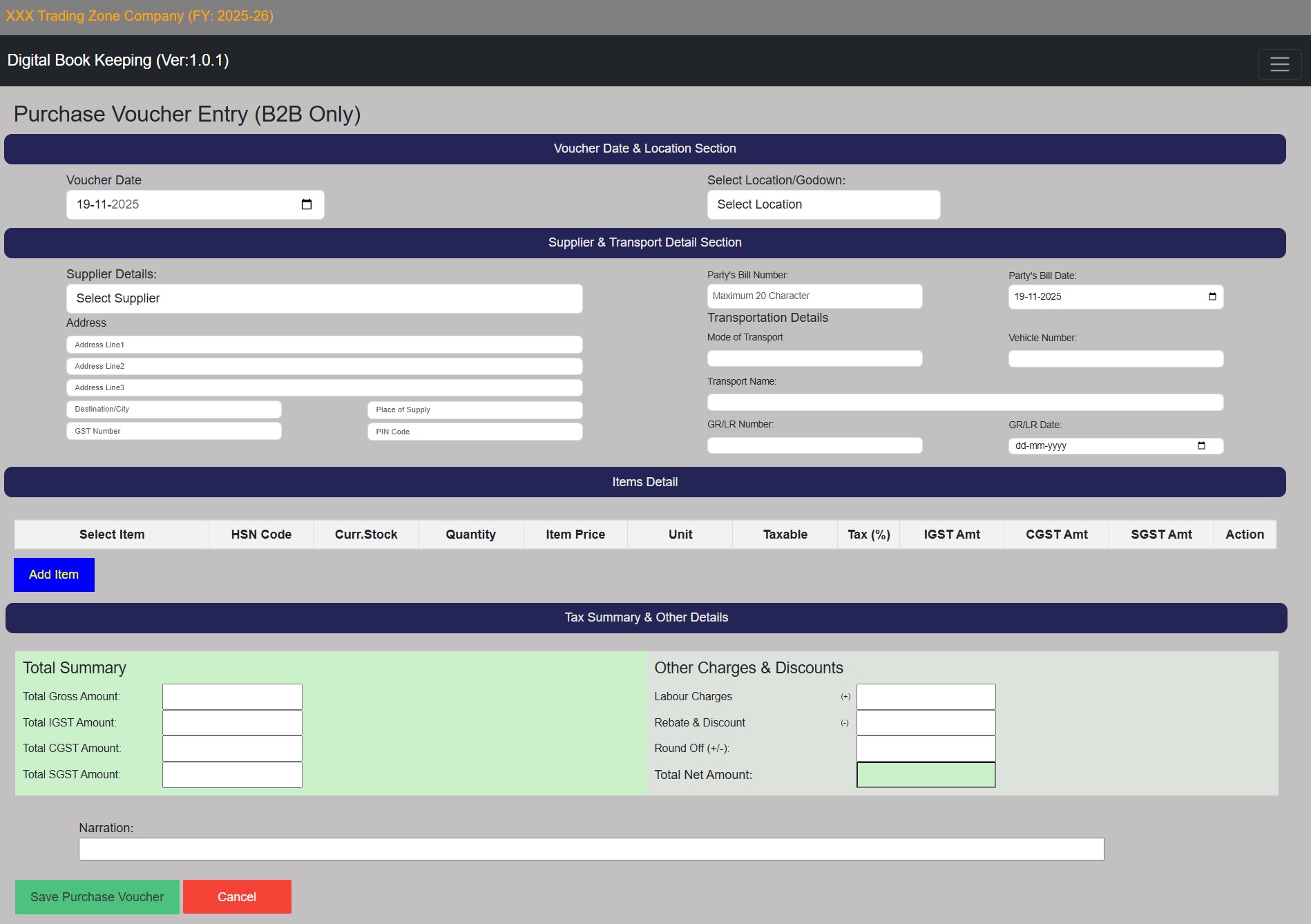 Purchase Voucher Window